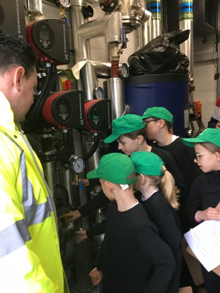 Following the Q&A, we gave the Eco Committee a tour of the new school building, explaining some of the key sustainable features incorporated into its design, including: